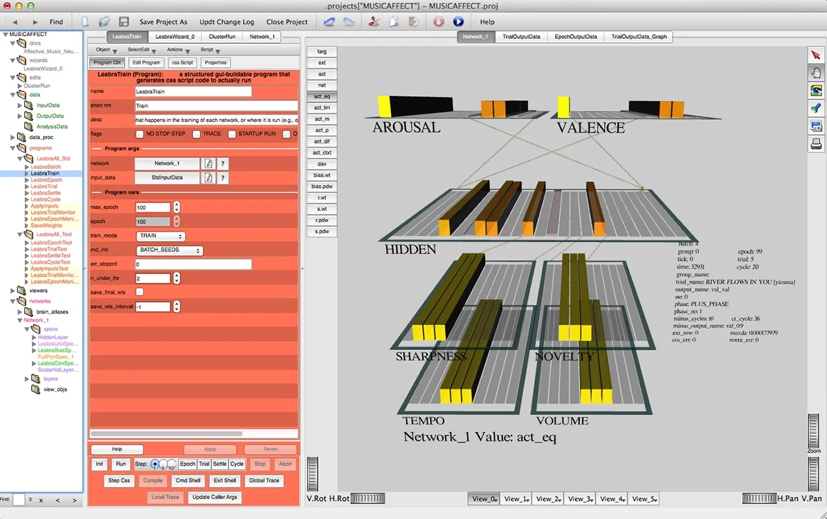 Given a musical stimulus, this neural network model, created with Emergent Neural Network Simulator, can predict the elicited affective response of a listener.